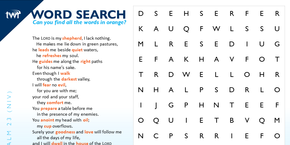 Twr Asia On Twitter If You Joined Us For Twr Homebound Last Week We Re Enjoying This Next Round Of Word Search With Psalm 23 Find This Search Its Key And More At
